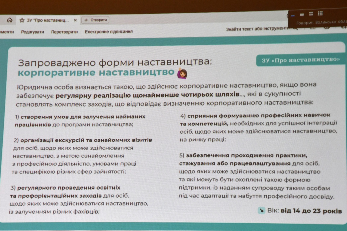 Круглий стіл на тему: «Від закону до практики: як розвивати наставництво у Волинській області» (15 квітня 2026 року)