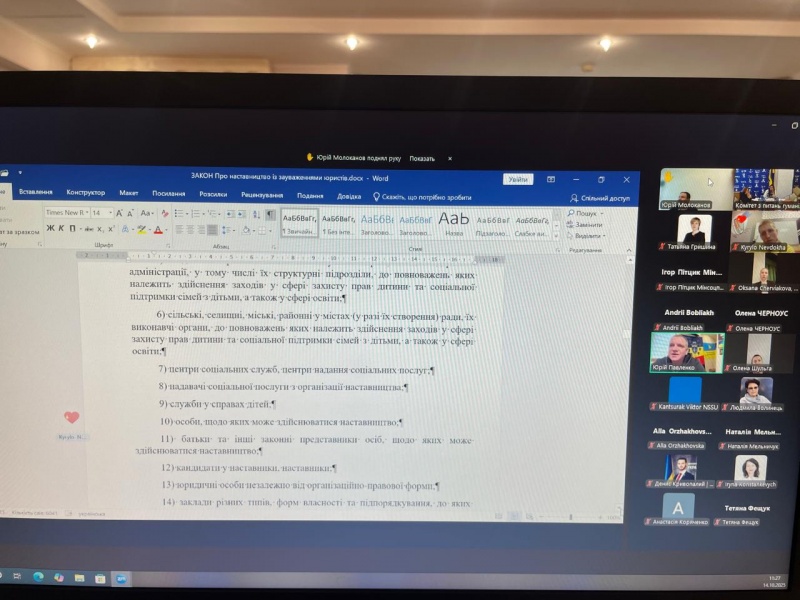 Над доопрацюванням документа активно працювала робоча група, яка провела 10 засідань. До її складу увійшли народні депутати України, Заступник Голови Верховної Ради України Олена Кондратюк, представники Офісу Президента, Секретаріату Уповноваженого Верховної Ради з прав людини, міністерств соціальної політики та освіти і науки України. Участь взяли також фахівці Національної соціальної сервісної служби, Державної служби України у справах дітей, громадських організацій і благодійних фондів, що займаються наставництвом та захистом прав дітей. До процесу долучилися радники й експерти місцевих адміністрацій та міжнародних організацій, які опікуються питаннями захисту дітей і молоді.