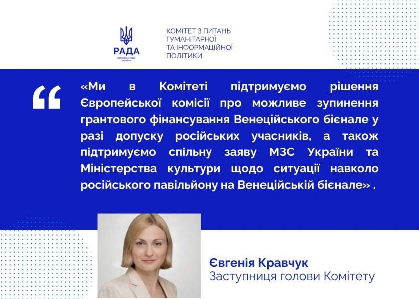У заяві підкреслюється, що Європейська комісія рішуче засуджує рішення Фундації Венеційської бієнале дозволити Росії відновити роботу свого національного павільйону. Представники ЄК наголосили, що позиція Європейського Союзу щодо незаконної та агресивної війни Росії проти України залишається незмінною, а держави-члени, інституції та культурні організації повинні діяти відповідно до санкцій ЄС.